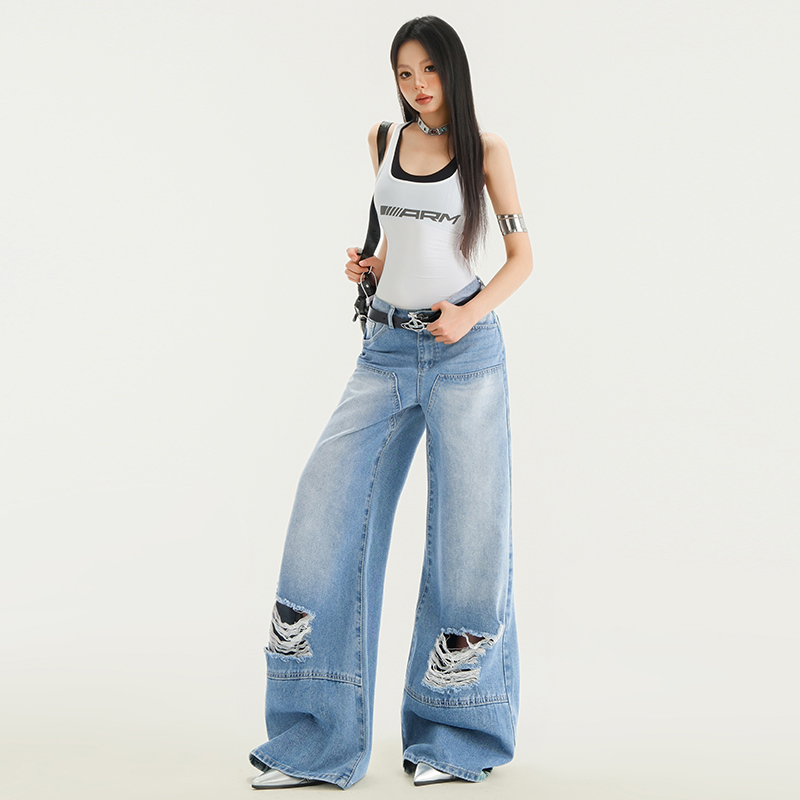 女冬40933286 100%棉复古高腰阔腿直筒牛仔裤 艾诺丝雅诗 建模裤