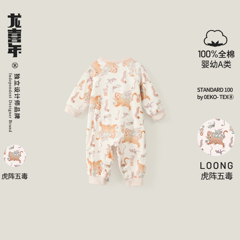 龙喜年婴儿百天宝宝衣服男中式 国风纯棉满月抓周百日宴女连体春秋