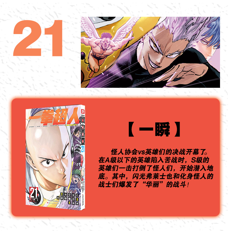 :日本漫画连环画 一瞬 热血搞笑动画动漫 简体中文版 社 一拳超人 天津人民美术出版 卷21