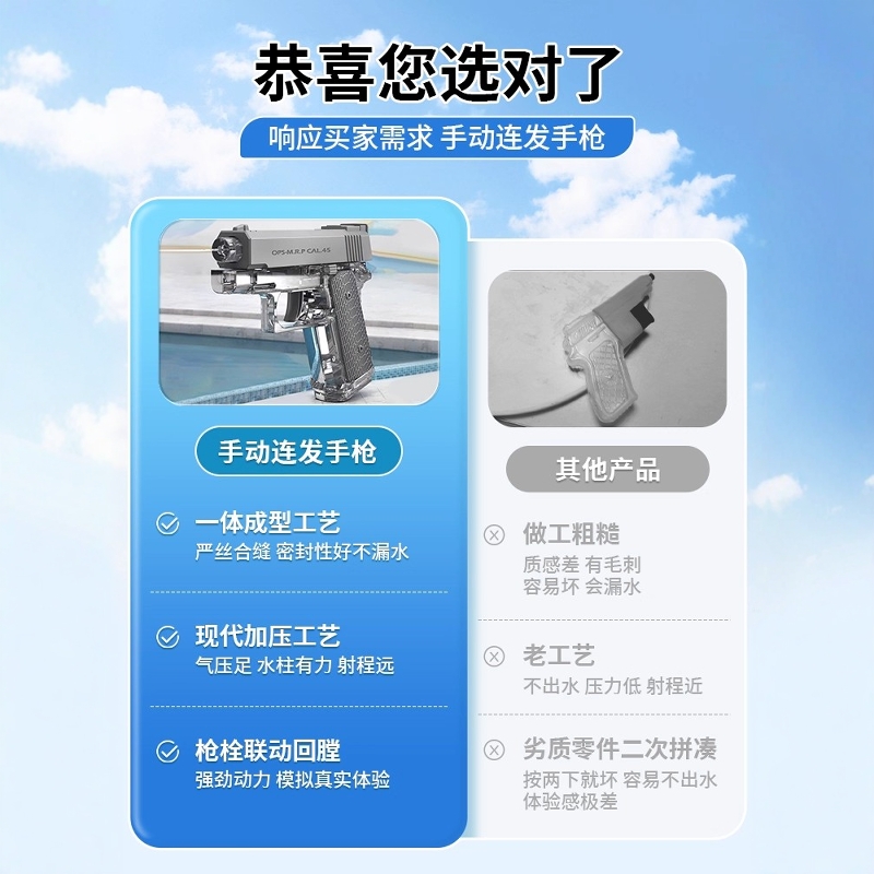 格洛克手枪2025新款 电动水枪玩具自动喷水男儿童打水仗成人漂流SQ