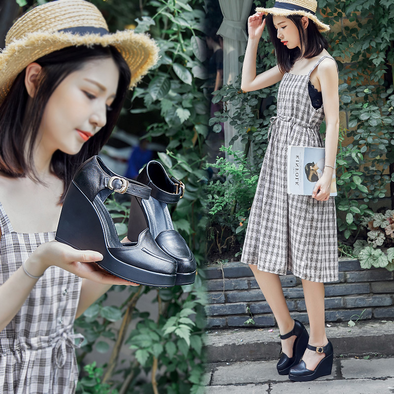 女高跟防水台厚底增高鞋 休闲真皮中空一字带凉鞋 2025新款 牛皮女鞋
