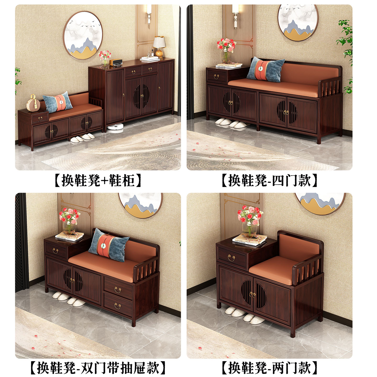 一体实木穿鞋 乌金木靠背换鞋 柜新中式 凳家用门口鞋 凳 凳乌金木换鞋