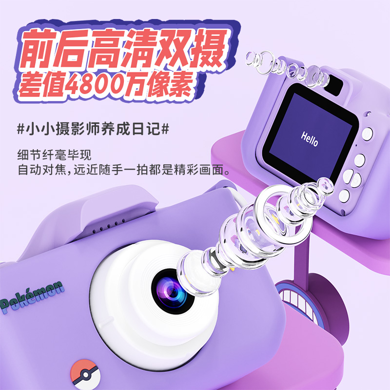 宝可梦儿童相机可拍照片可录像打印2025新款 玩具高像素拍立得积虎