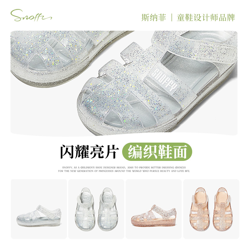 女孩银色沙滩速干宝宝凉鞋 斯纳菲女童果冻鞋 新款 夏季 罗马包头凉鞋