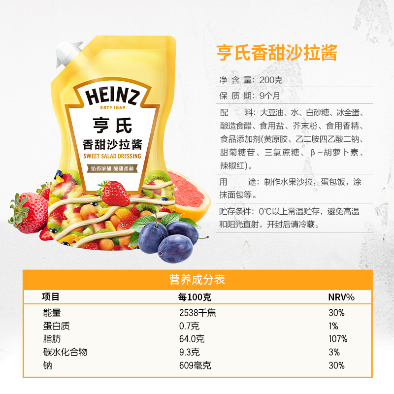 亨氏香甜沙拉酱200g挤挤袋装 家用水果蔬菜色拉酱肉松面包寿司食材