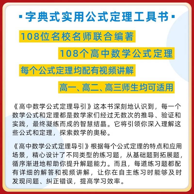 高中高一高二数学实用公式 2025版 浙大优辅 定理导引 定理工具书解题技巧思想方法导引高三新高考数学一二轮复习资料书 高中数学公式
