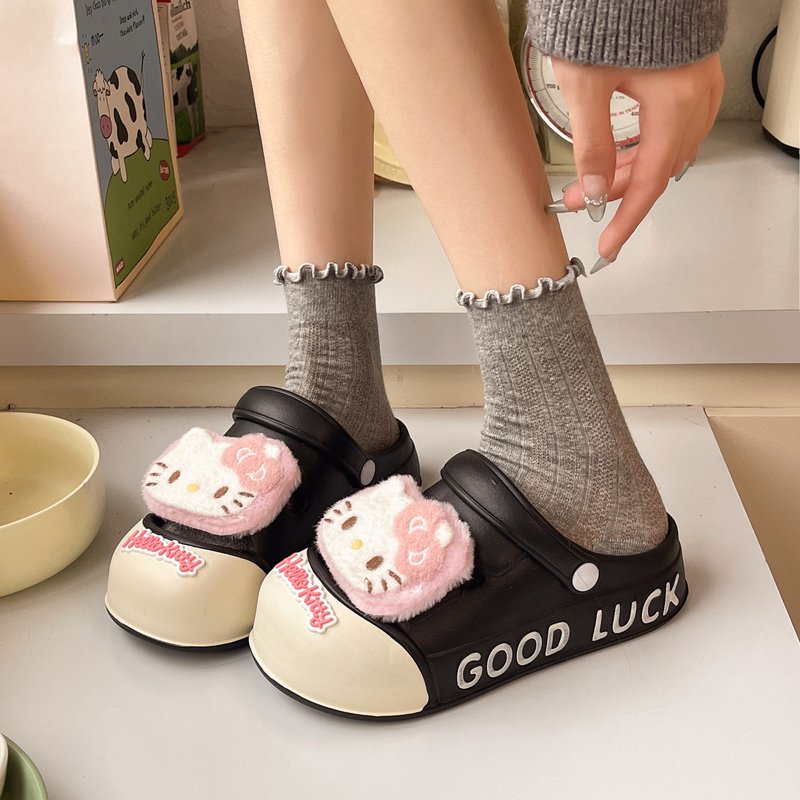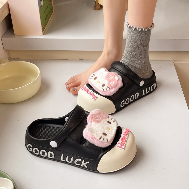 外穿凉拖鞋 日系可爱凯蒂猫字母洞洞鞋 女夏踩屎感舒适居家包头拖鞋