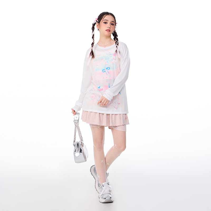 LAMLICKA多巴胺字母长袖 T恤女春秋宽松慵懒风休闲百搭圆领上衣