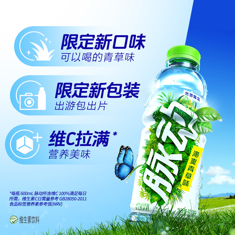 脉动沁爽青草味低糖维生素c补水饮料600ML 15瓶