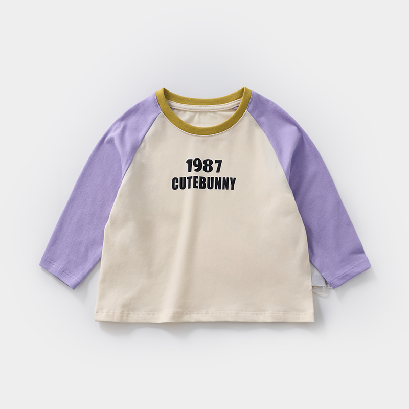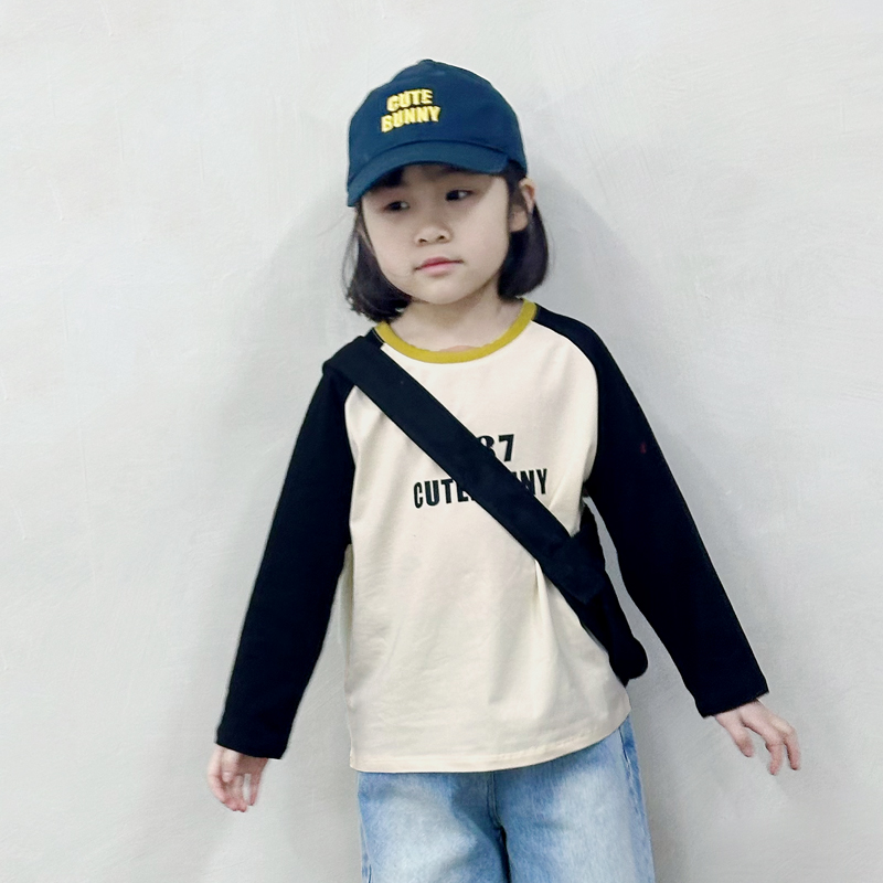 T恤宝宝插肩拼色字母打底衫 2025春季 圆领休闲长袖 男女童爆款 新款