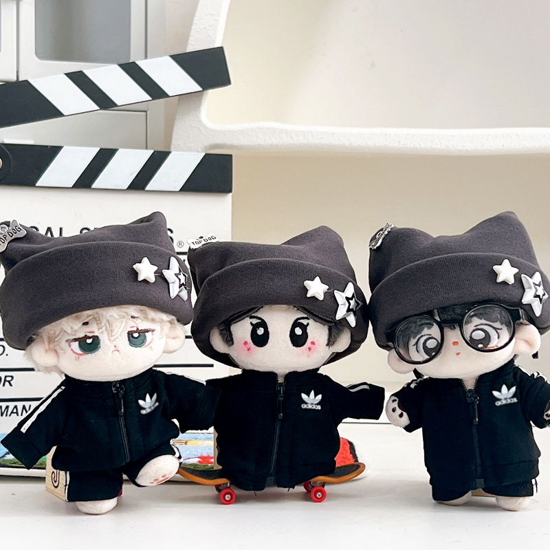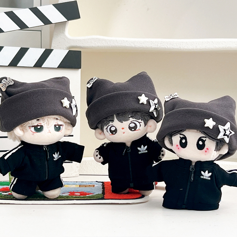 10cm棉花娃娃衣服阿迪套装 玩偶公仔衣服穿着替配饰 帅酷猫耳帽套装