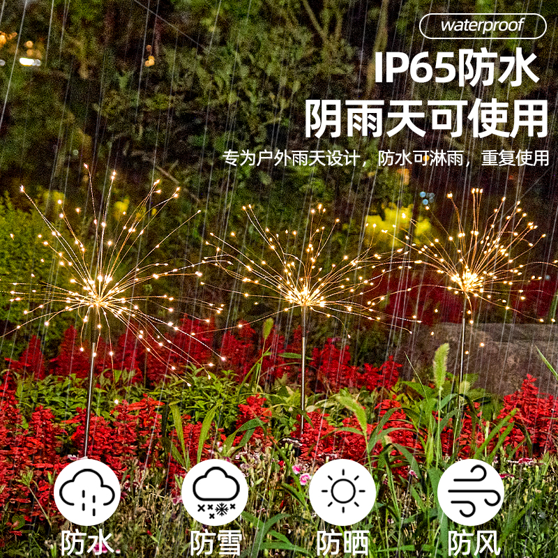 圣诞户外太阳能烟花蒲公英地插灯庭院防水氛围装 饰花园草坪小夜灯