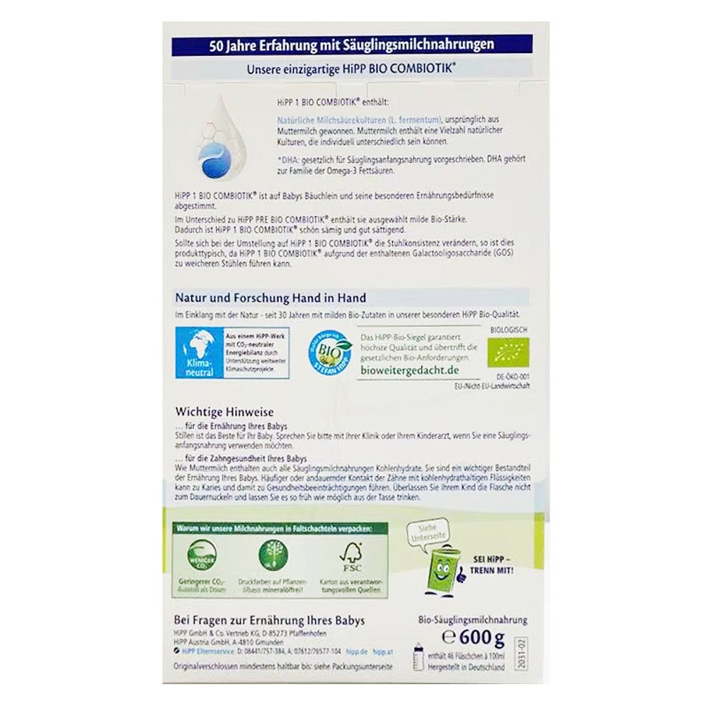 600g1罐装 欧洲直邮HiPP喜宝COMBIOTIK德版 6个月 益生菌奶粉1段