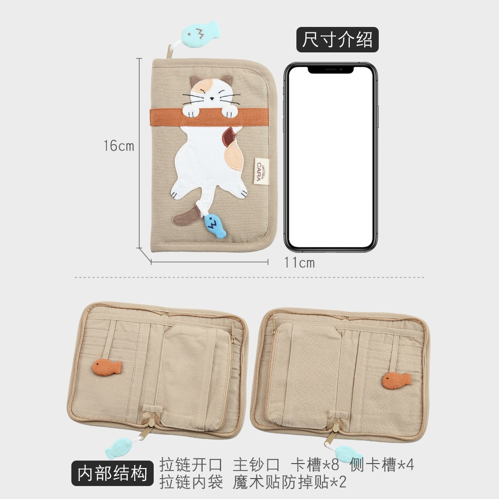 HIKOSEN 钱包粉色可爱猫咪ins风女手拿包 CARA卡拉猫三花猫猫长款
