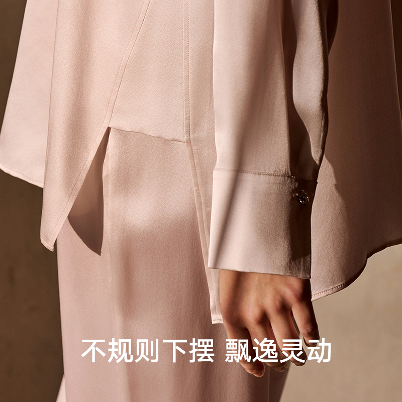 长裤 曼妮芬真丝家居服套装 女士舒适长袖 v领睡衣睡裤 20312047 中式