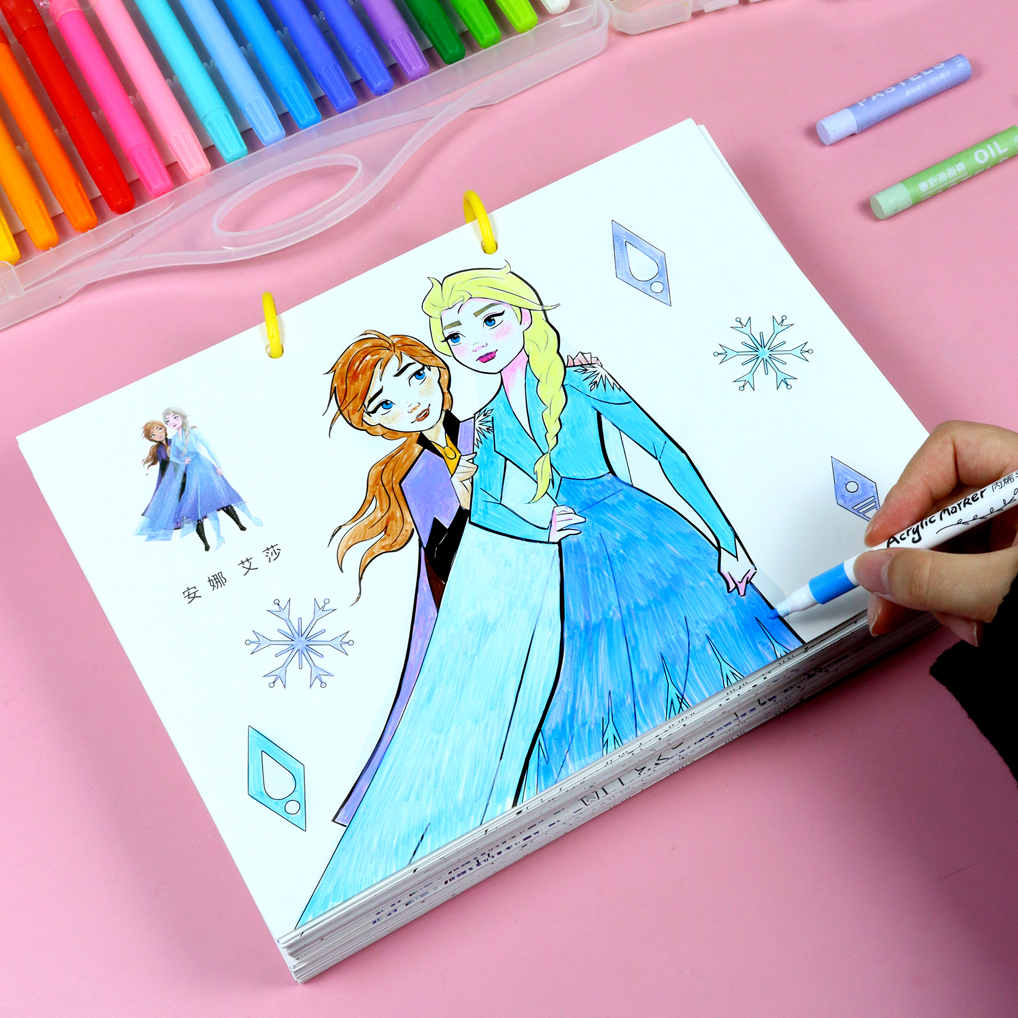 艾爱莎公主画画书冰雪奇缘儿童涂色本3 6岁女孩马克笔填色涂鸦画