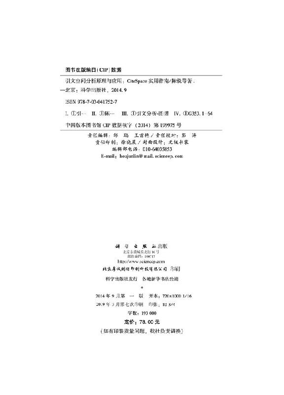 引文空间分析原理与应用 社 CiteSpace实用指南科学出版