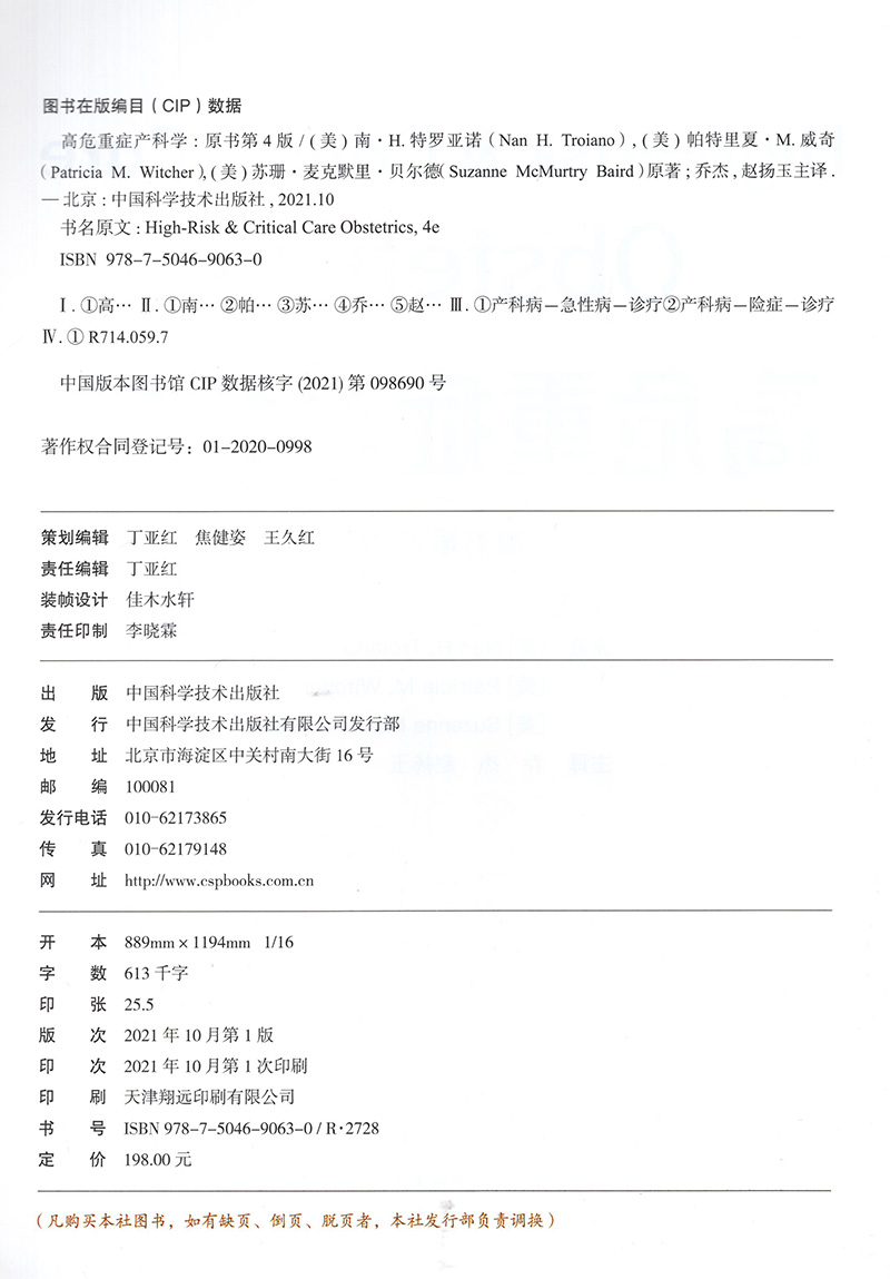 现货精装 赵扬玉译产科临床医学书籍中国科学技术出版 高危重症产科学 乔杰 社9787504690630 原书第4版 正版