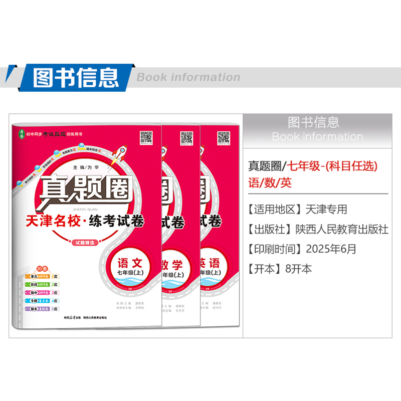天津专用2025新版 真题圈七年级上册下册语文数学英语历史道德与法治任选初一7年级同步测试卷期中期末真题模拟卷初中考试复习训练