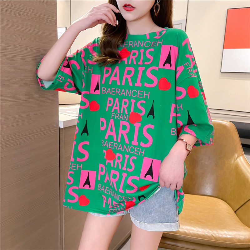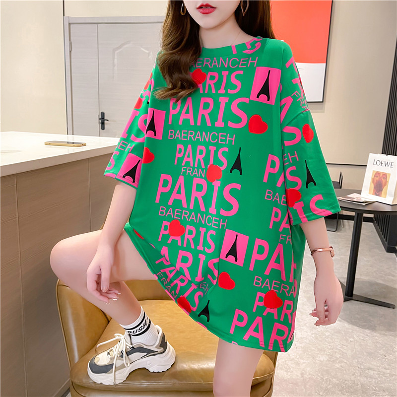 T恤女中长款 短袖 ins超火下半身失踪 欧洲站宽松大码 2025春夏新款
