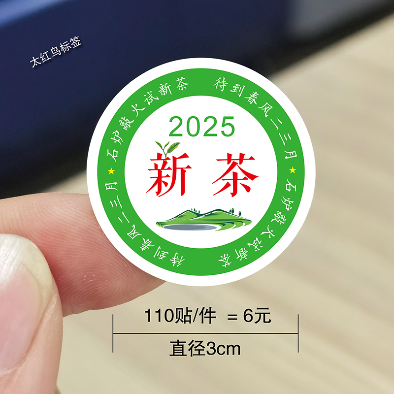2025年新茶标签茶叶不干胶贴纸 3CM圆通用条封口贴定制绿红茶现货