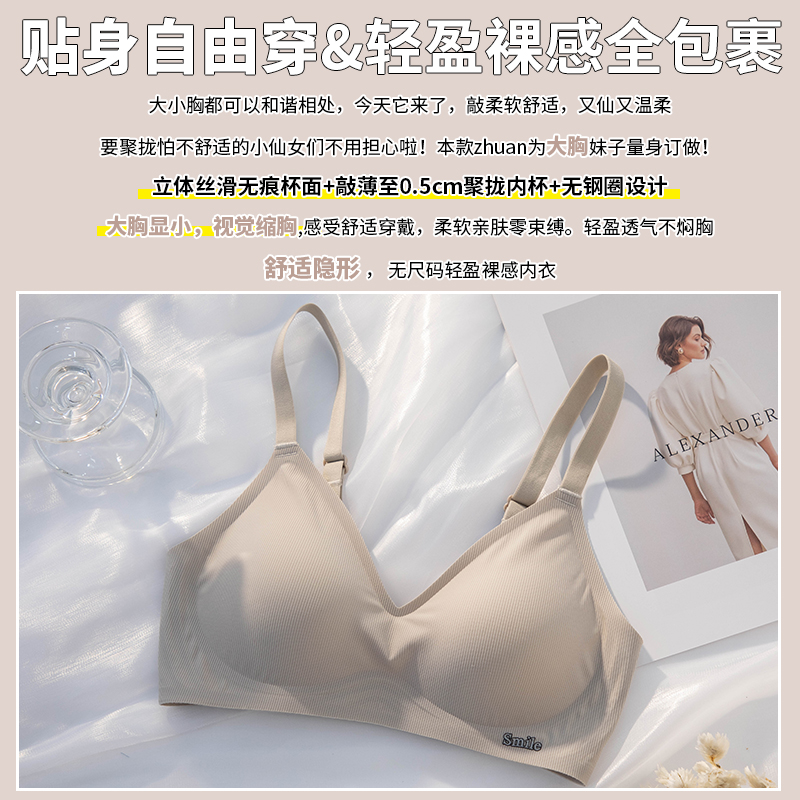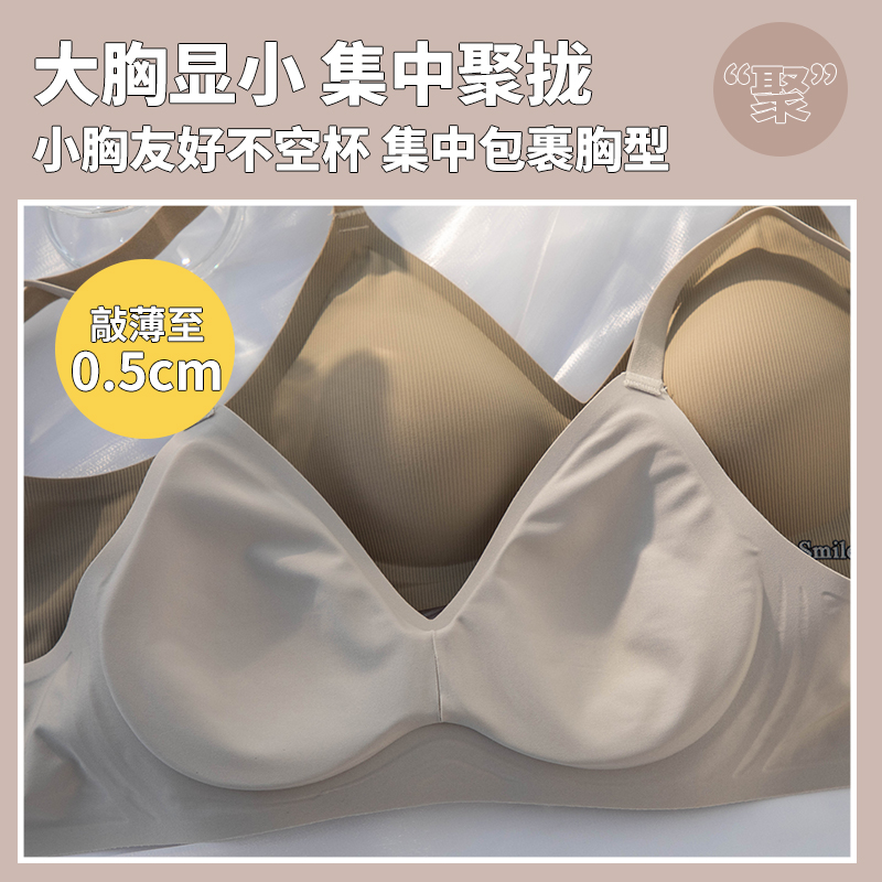无痕亲肤舒适内衣女3D果冻条软支撑文胸罩薄款 胸显小收副乳一片式