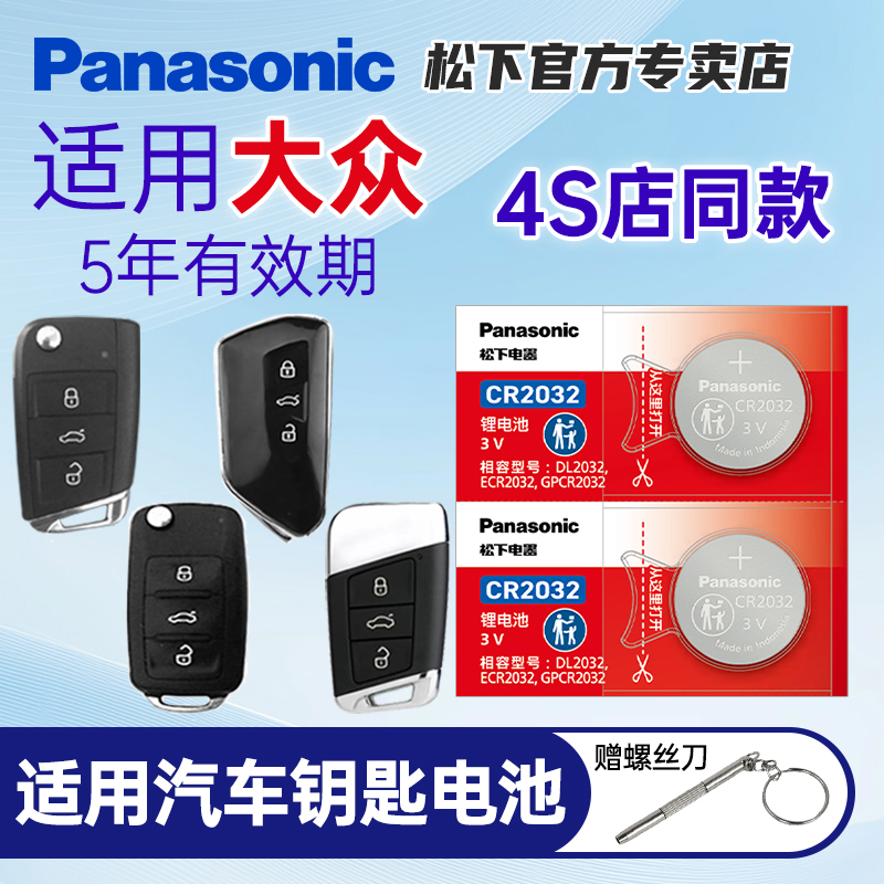 适用大众朗逸高尔夫7速腾迈腾B8途观L宝来CC探岳polo凌度ID汽车钥匙纽扣电池原装 CR2032遥控器2025帕萨特plus