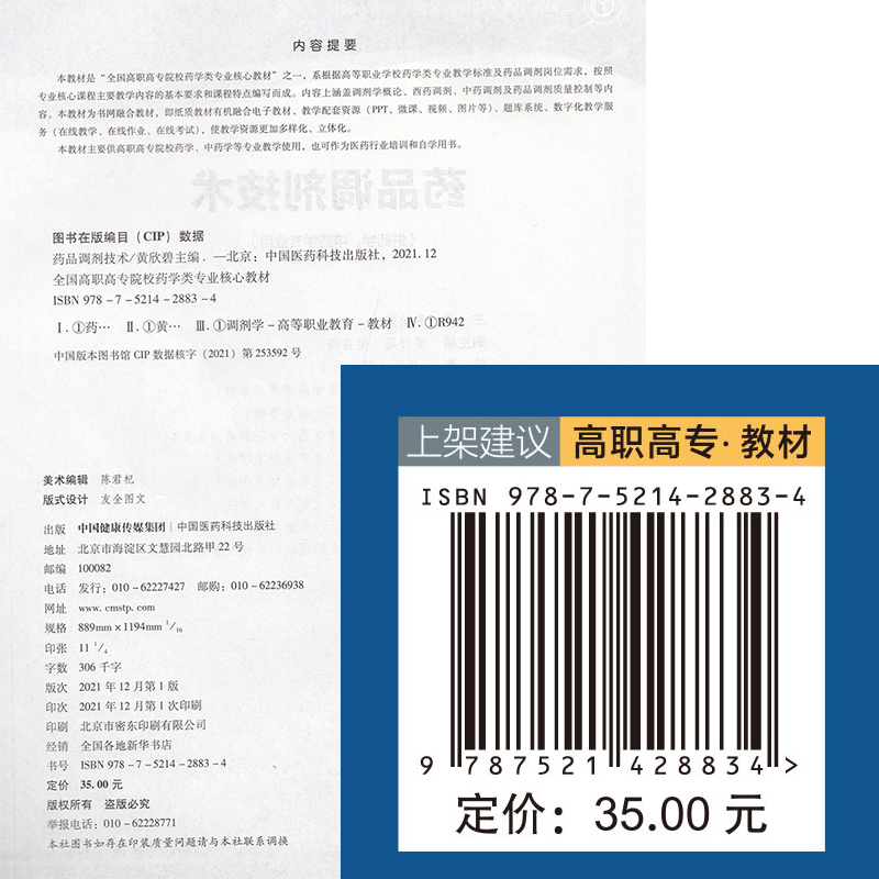 现货平装 中国医药科技出版 药品调剂技术 黄欣碧 社9787521428834 全国高职高专院校药学类专业核心教材 正版