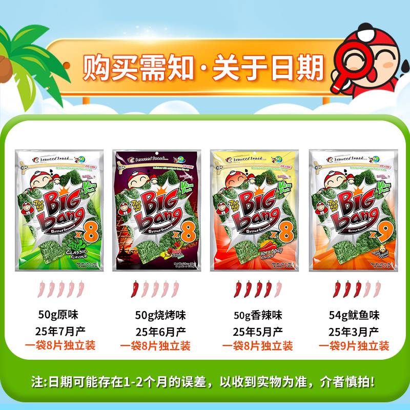 TaoKaeNoi老板仔旗舰店泰国进口零食bigbang烤紫菜装 原味50G