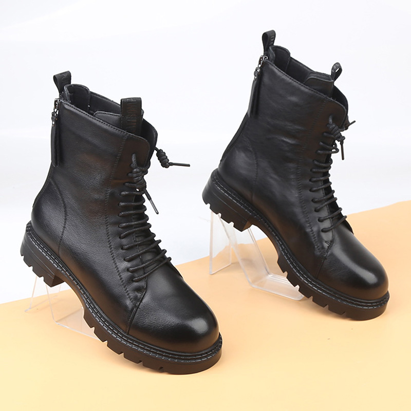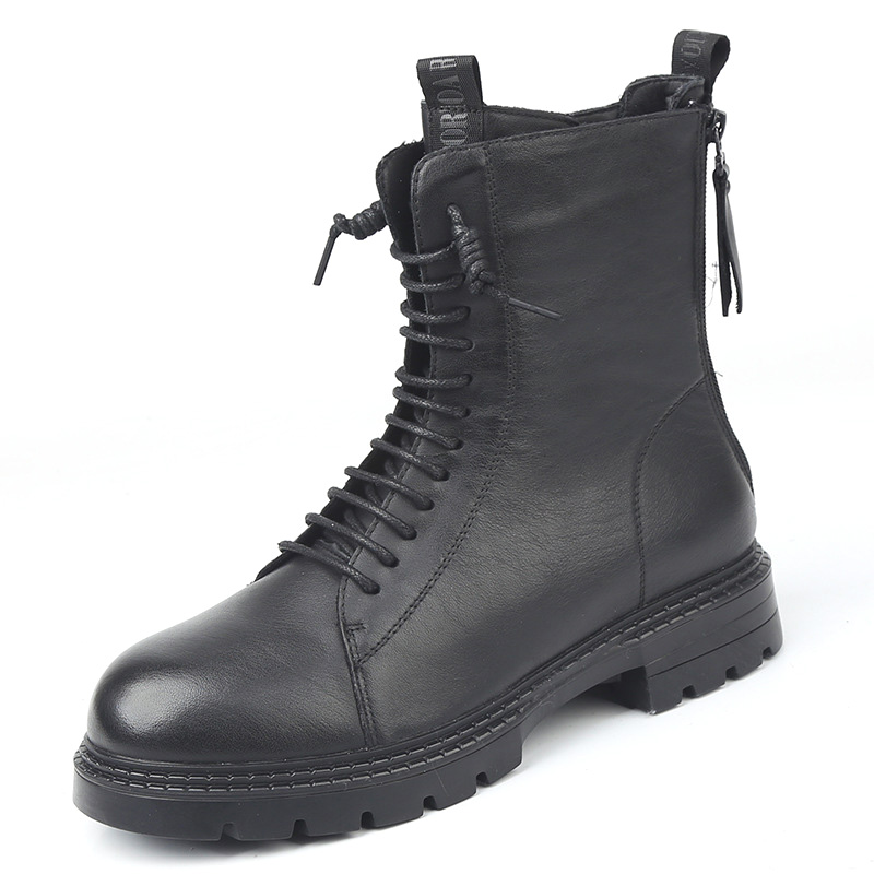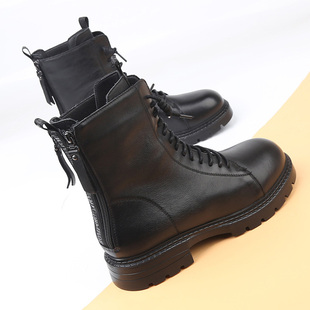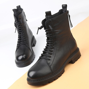 黑色增高靴子女时尚 新款 休闲皮面短靴 2025秋季 环球厚底马丁靴女款