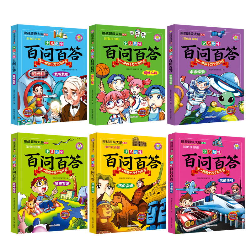 彩图注音版 全6册挑战超级大脑少儿趣味百问百答正版 奇妙人体宇宙探索交通博览历史文明发明发现地球家园儿童文学百科全书 正版