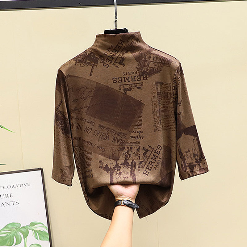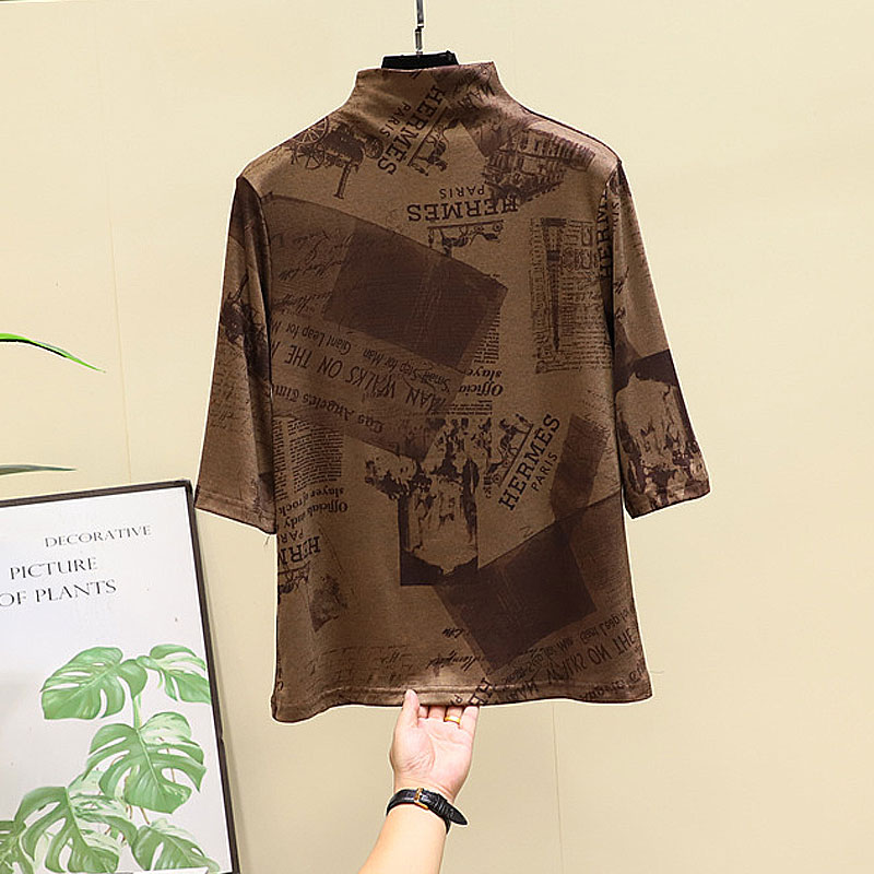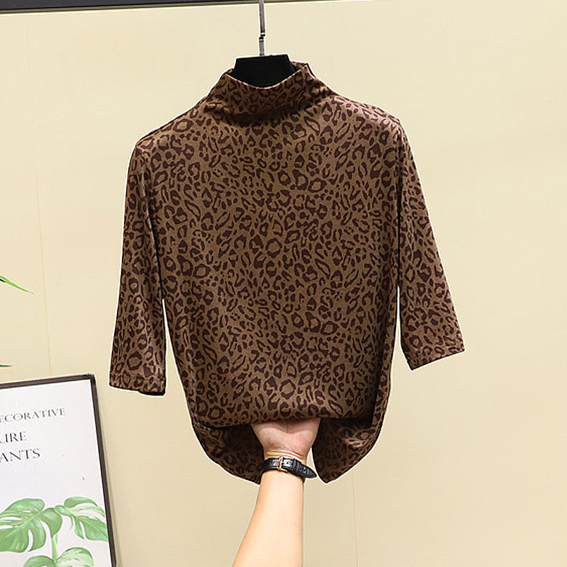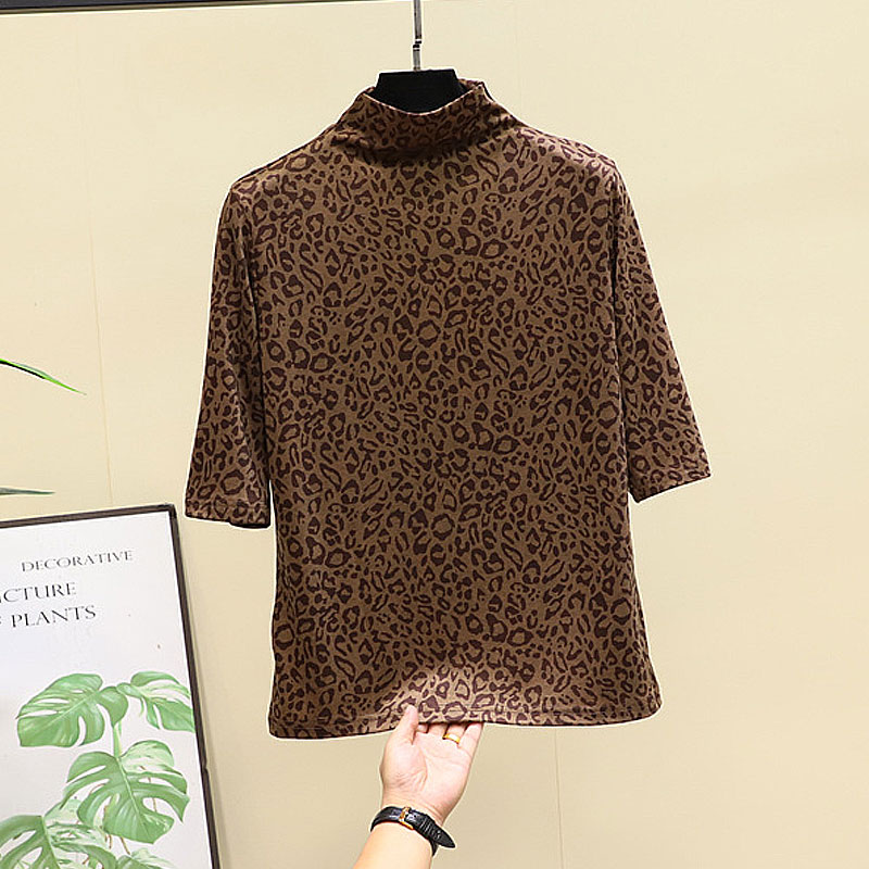 女薄款 堆堆领打底衫 t恤半袖 秋上衣中袖 欧货大码 豹纹小衫 2025新款