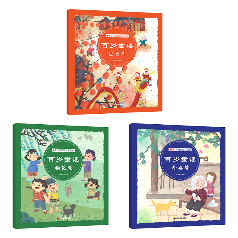 一年级二年级幼儿早教童谣书籍中国宝宝300首四川教育出版 翻花绳过大年外婆桥花巴掌 社 注音版 百岁童谣3册全集正版