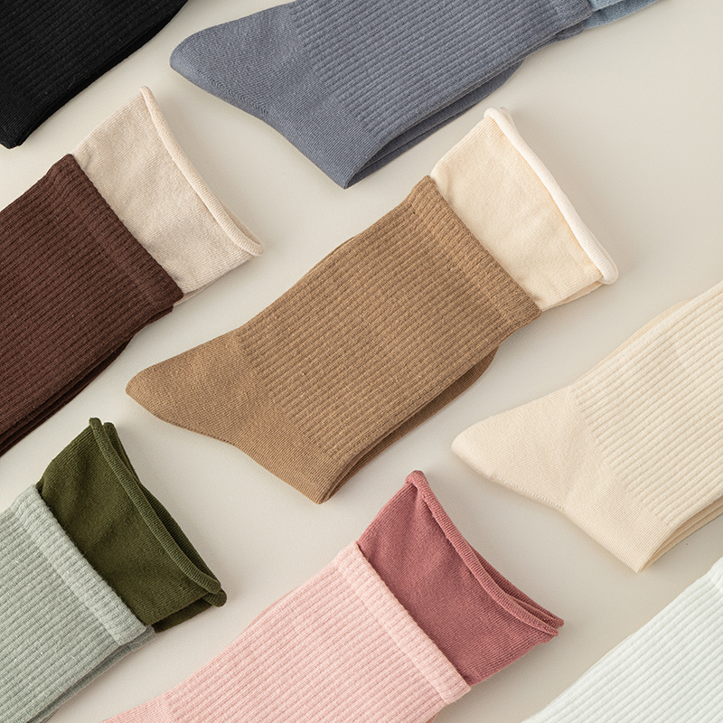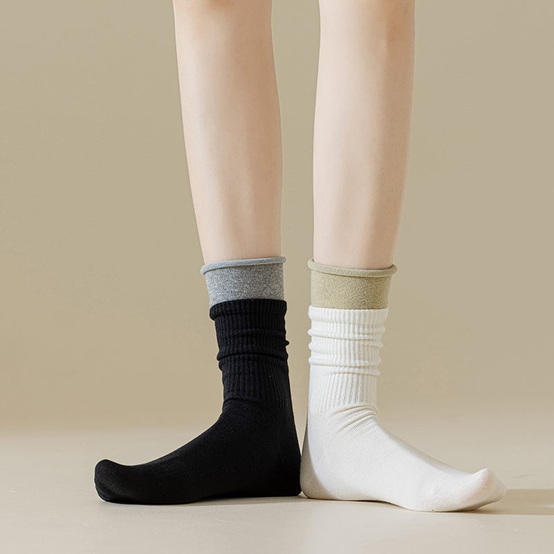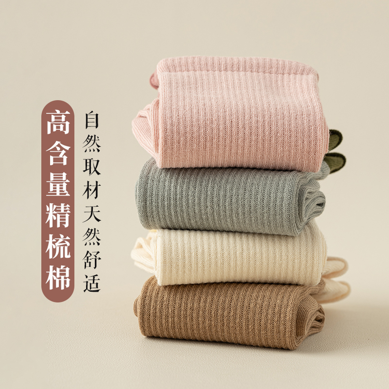袜子女中筒袜秋季 纯棉叠穿多巴胺秋冬无骨月子袜女士长筒堆堆袜