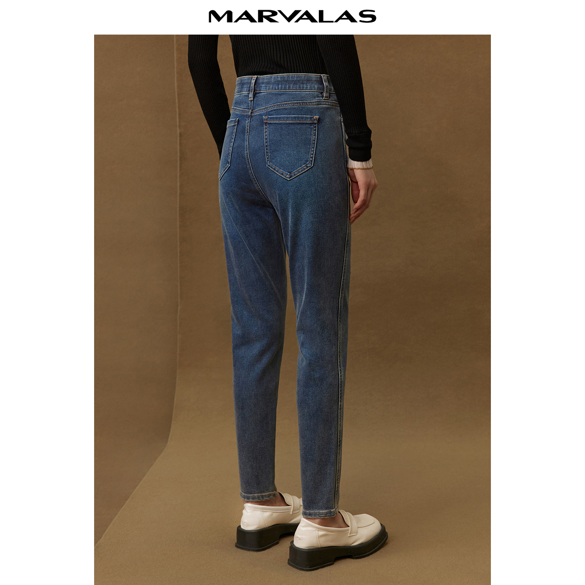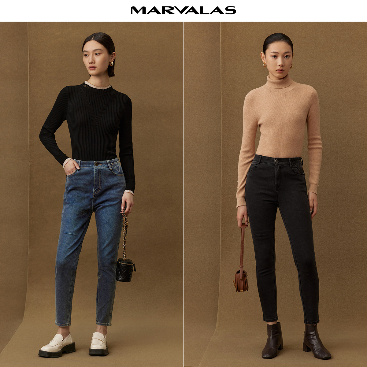 半松紧腰直筒裤 森柔牛仔 休闲秋季 女复古简约长裤 通勤 森马牛仔裤