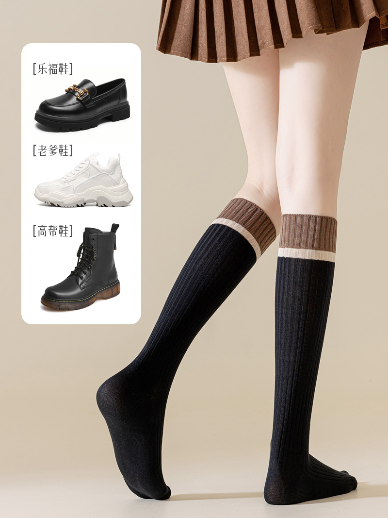 小腿袜子女春秋纯棉黑色长筒袜JK及膝中筒显瘦半截高筒长袜2025款