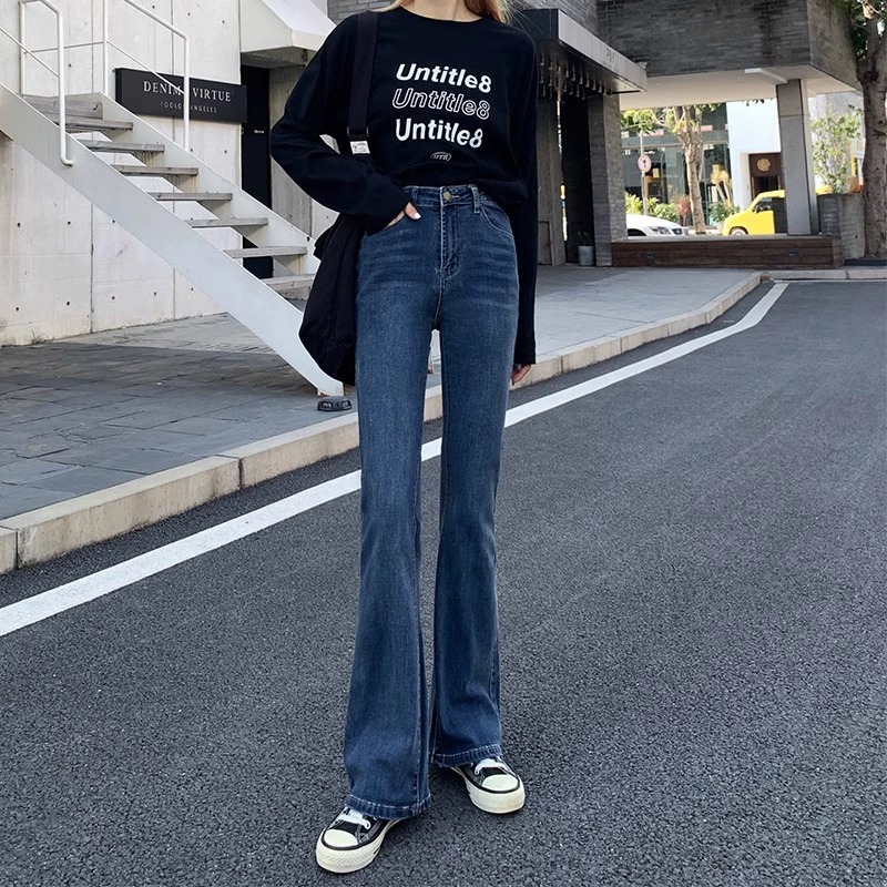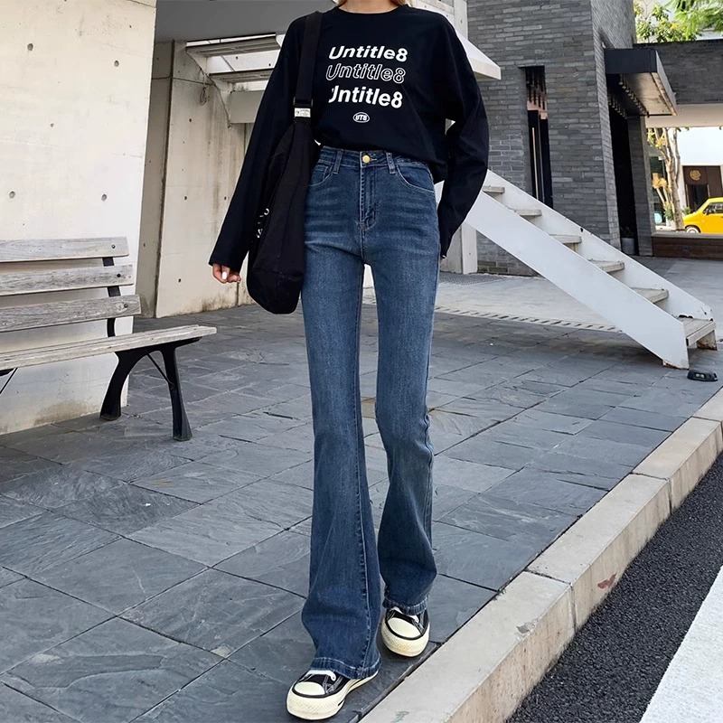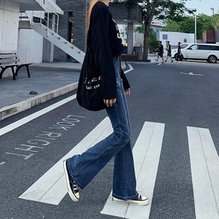 女士牛仔裤 黑色显瘦喇叭牛仔裤 2025年秋季 复古修身 新款 热风微喇裤