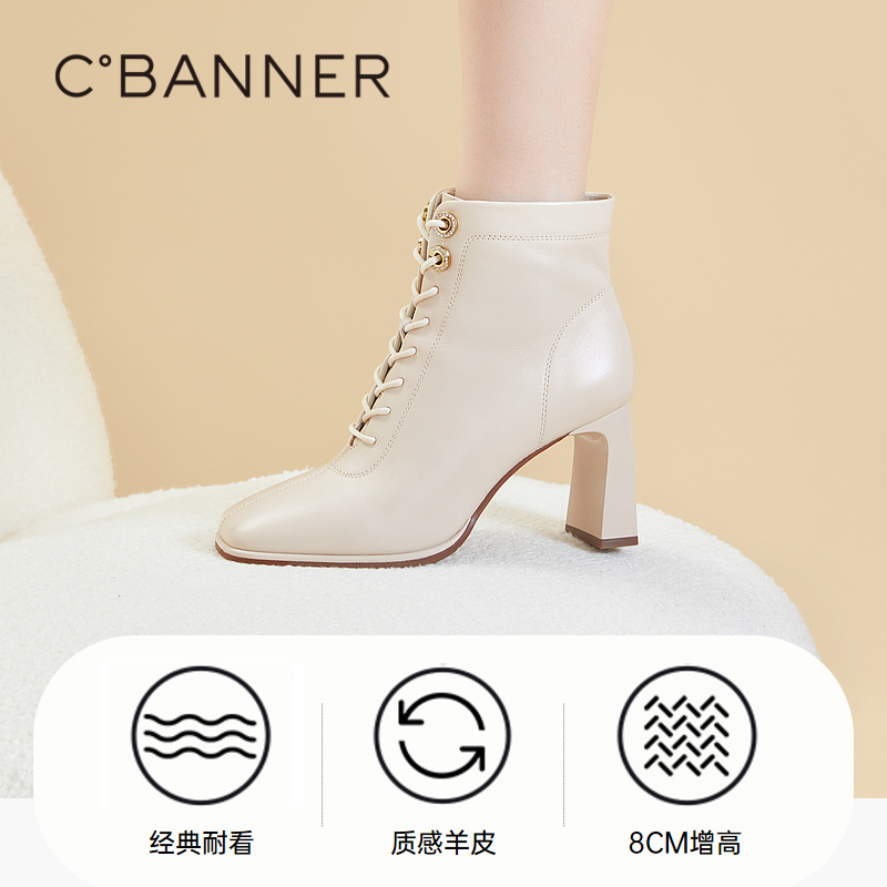 短靴子显瘦女鞋 靴羊皮马丁靴时尚 百搭气质秋冬高跟时装 千百度女鞋