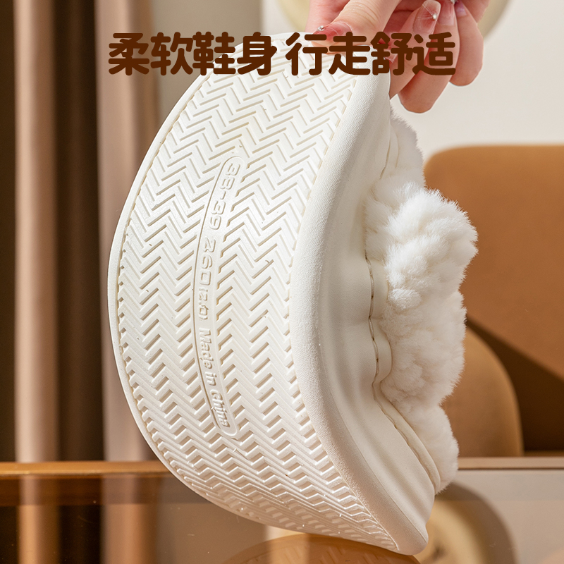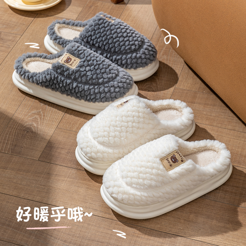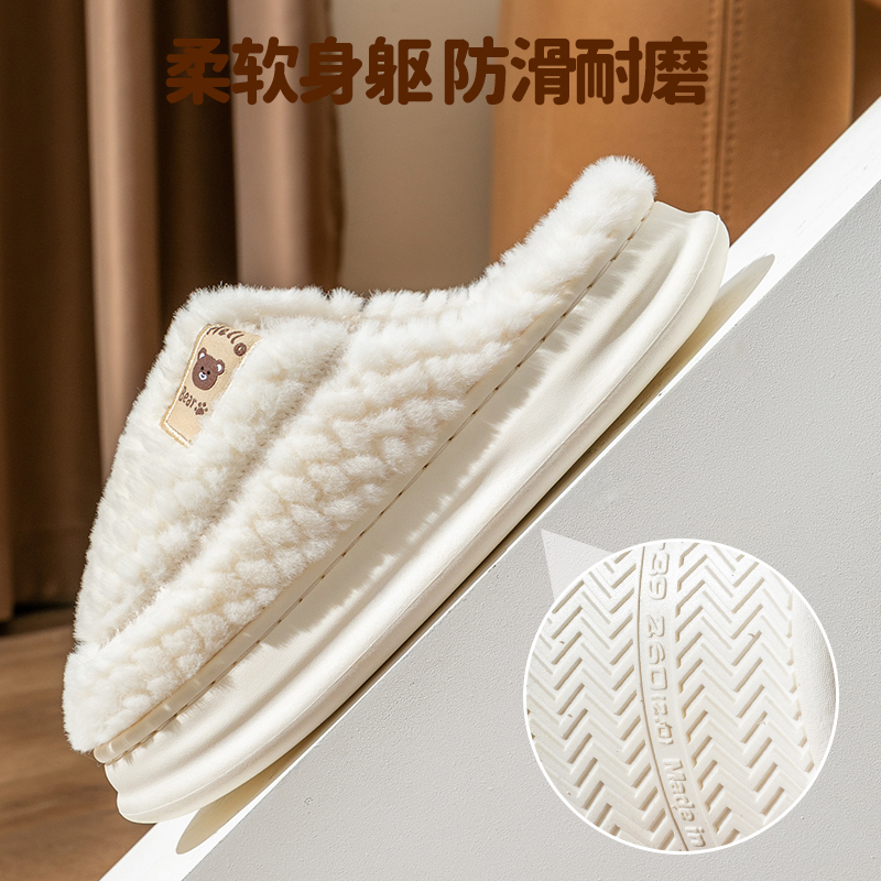 保暖情侣居家家用棉鞋 防滑厚底踩屎感月子鞋 男 女秋冬季 包头棉拖鞋