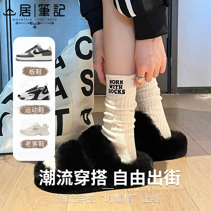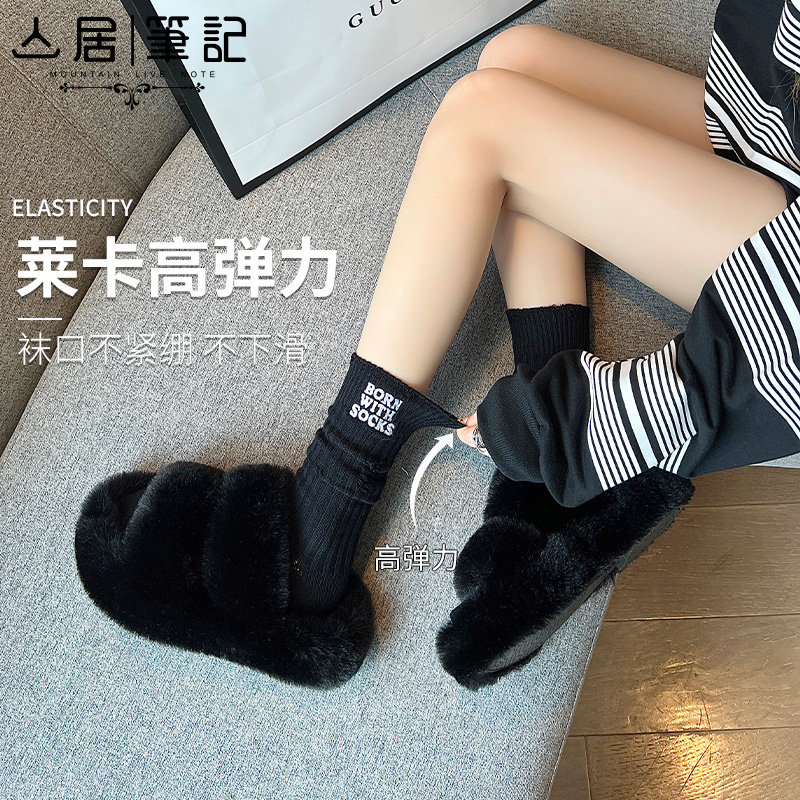 搭配小皮鞋 中筒袜秋冬季 白色防臭月子无骨 纯棉春秋季 堆堆袜子女款