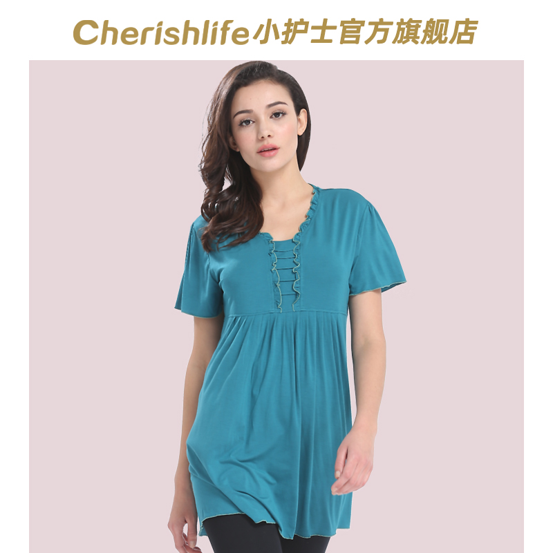 家居服宽松中老年上衣 短袖 小护士内衣睡衣女夏天薄款 外穿休闲长款