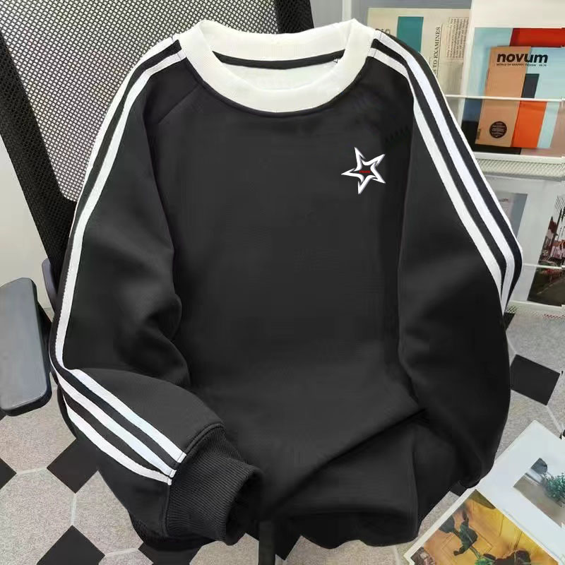 三条杠卫衣男春秋季 复古ins国潮牌纯棉重磅宽松情侣上衣外套 美式