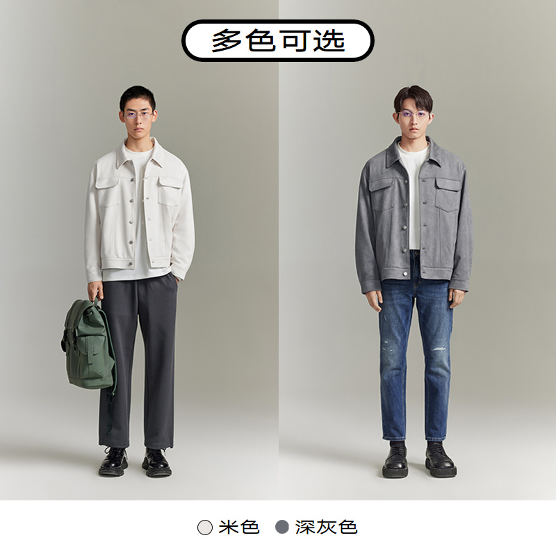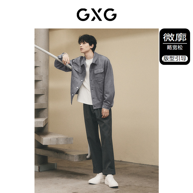 热卖 GXG男装 秋季 风夹克加厚外套男休闲夹克外套 复古仿麂皮工装