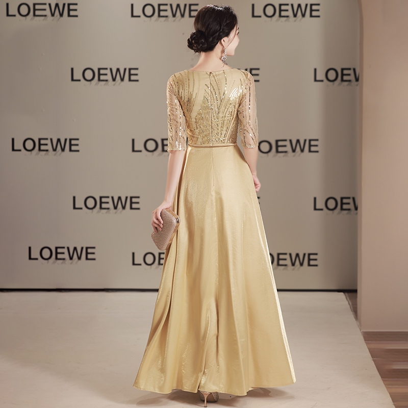 一字肩晚礼服开衩亮片明星同款 长裙女 成人礼毕业连衣裙主持人晚装