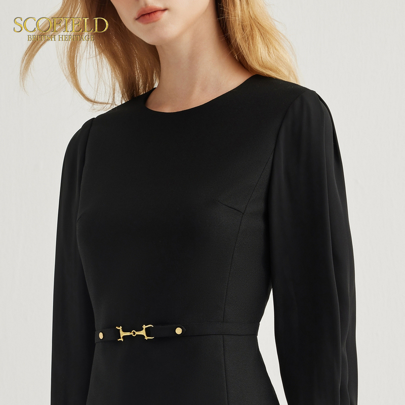 羊毛气质圆领收腰连衣裙通勤小黑裙 Scofield女装 预售免定金