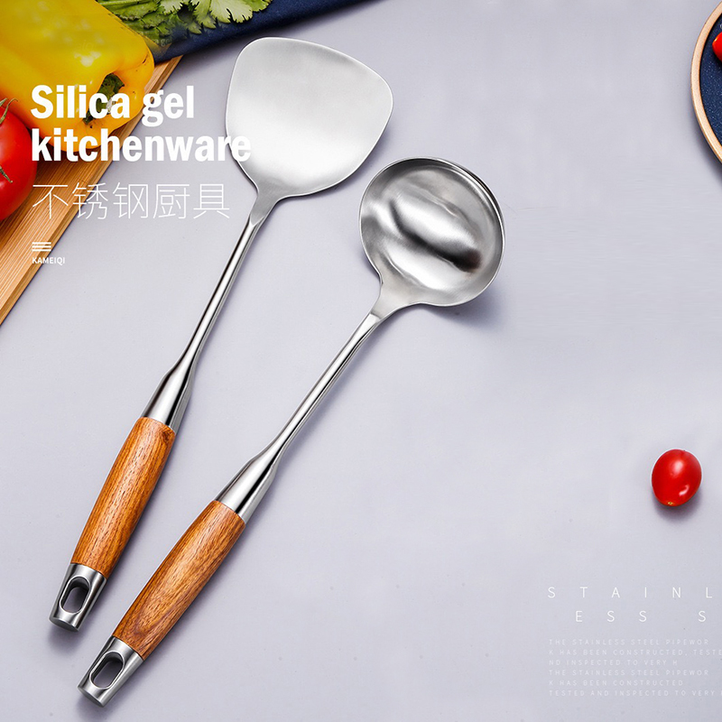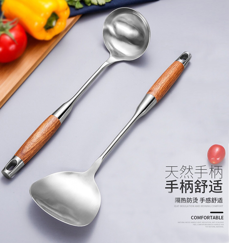 强帆锅铲锅勺汤勺木柄加厚防烫不锈钢锅铲铁勺家用炒菜炒勺厨具
