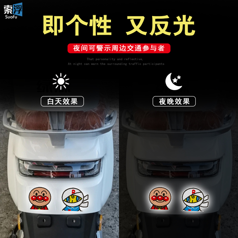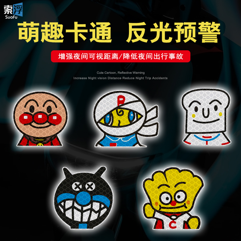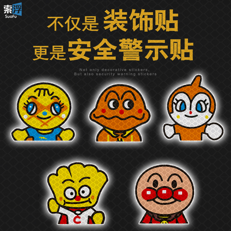 面包超人电动车装 反光车贴汽车贴划痕遮挡头盔防水贴纸 饰创意个性