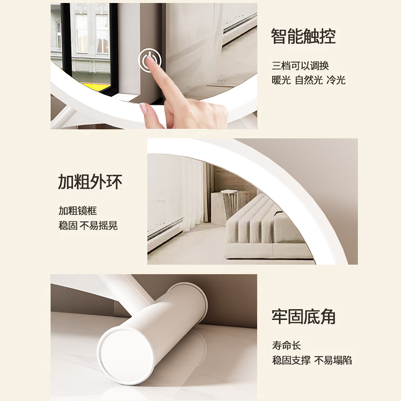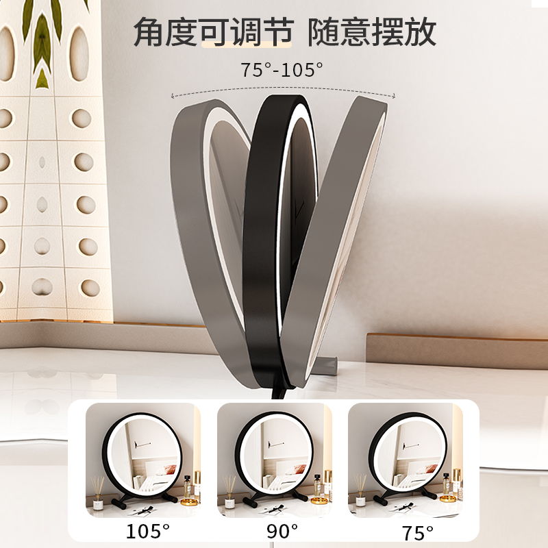 梳妆台智能led化妆镜带灯可爱卧室台式 镜子学生宿舍桌面ins梳妆镜