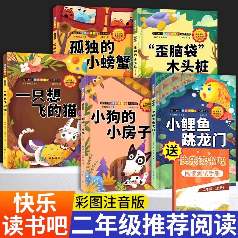 猫歪脑袋木头桩小狗 快乐读书吧二年级上册全集5册 小螃蟹一只想飞 小鲤鱼跳龙门孤独 小房子小学生课外书籍 莫国夫彩图注音版