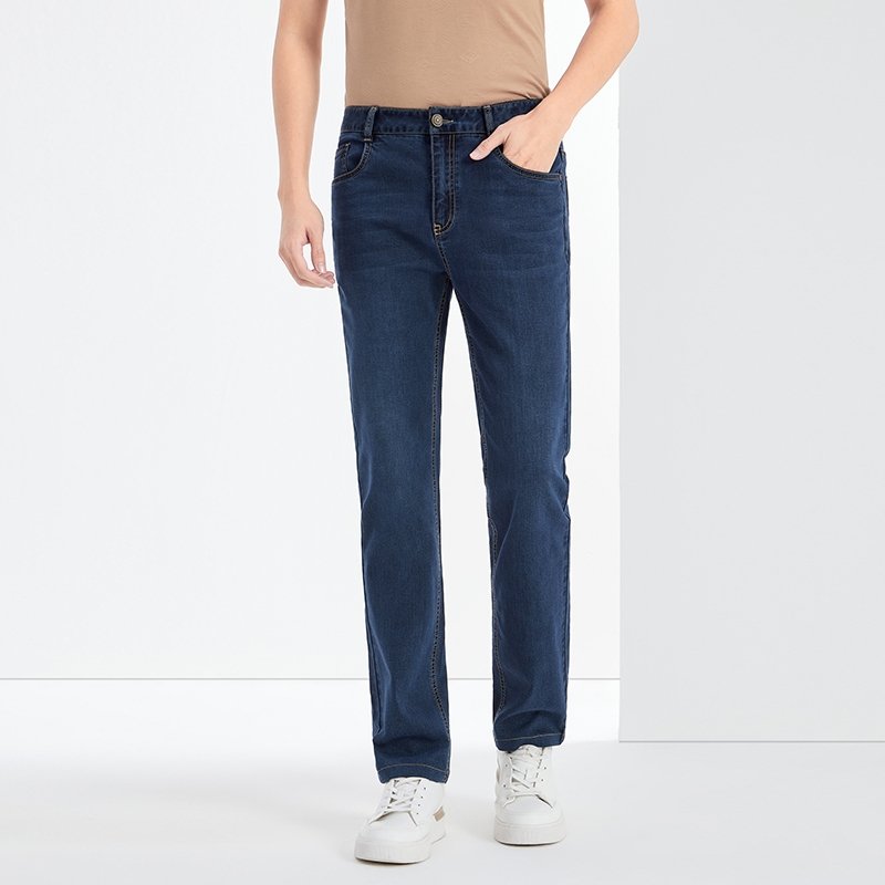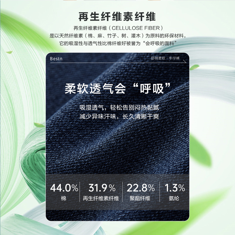 秋冬款 牛仔裤 百斯盾官方男装 舒适吸湿透气中直筒长裤 莱赛尔